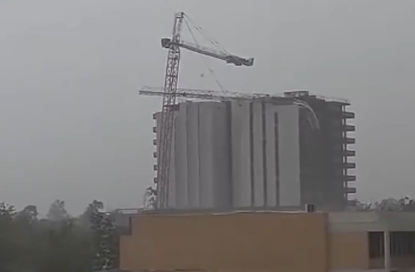 The crane initially lost its jib as winds of 115kph and higher lashed the area, along with a sandstorm.