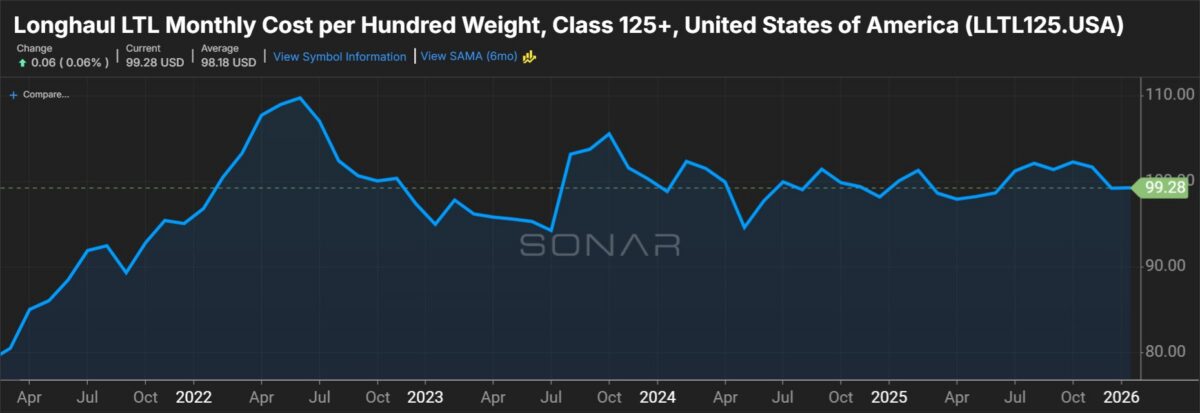 Management said on a Tuesday call that the company normally records 30 to 50 bps of sequential OR deterioration from the fourth to first quarter. It expects to outperform that change rate this year, potentially logging sequential improvement, given the diminished starting point. The guide could represent y/y improvement from the 91.1% OR posted in the 2025 first quarter. (Saia’s outlook was provided using a fourth-quarter adjusted OR of 91.3%, which excludes the insurance hit.)