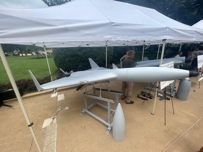 The U.S. military unveiled the LUCAS one-way attack drone during a July event in the Pentagon courtyard. Credit: Steve Trimble/AW&ST