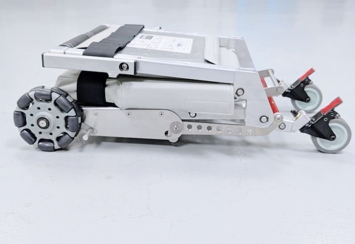 - Directional mobility: The two front wheels are omnidirectional and the rear two pivot on an axle, allowing forward and reverse movement with less effort in narrow aircraft aisles.
